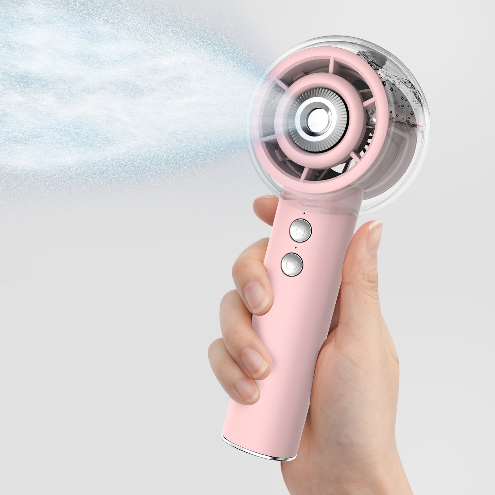 • Upgraded Misting Technology & 25mL Visible Water Tank: Features a transparent, leak-proof 25mL water tank (mineral water recommended for a finer mist) and an enhanced nozzle that delivers 30% more mist volume for rapid cooling. The smart 10-minute mister auto-shutoff of the misting fan portable protects battery life and prevents overuse, while its lightweight design ensures instant, sweat-free relief anywhere—indoors, outdoors, or on the go. Stay refreshed in seconds, even in peak summer heat